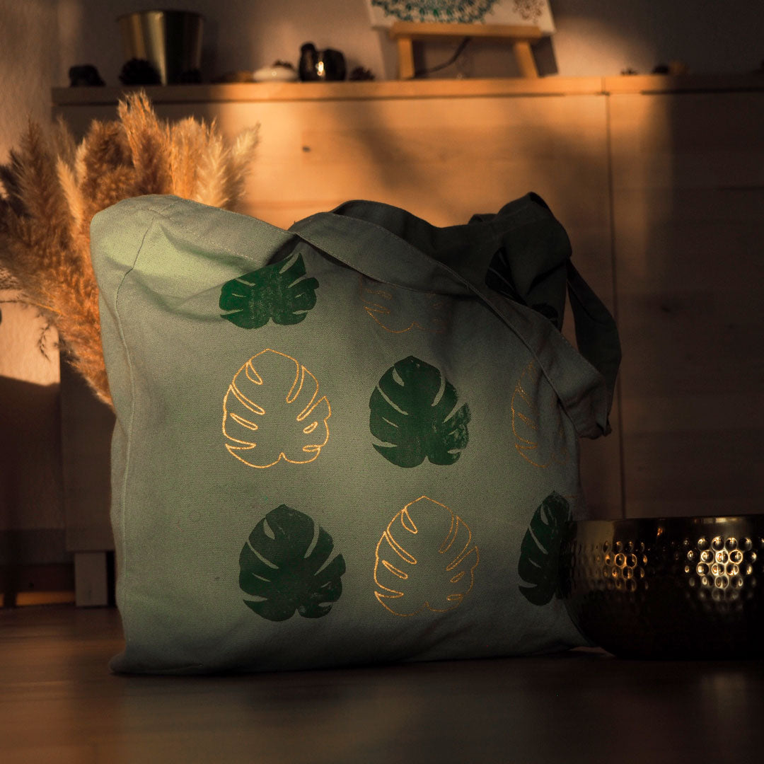 Die Tragetasche besteht zu 100% aus Baumwolle